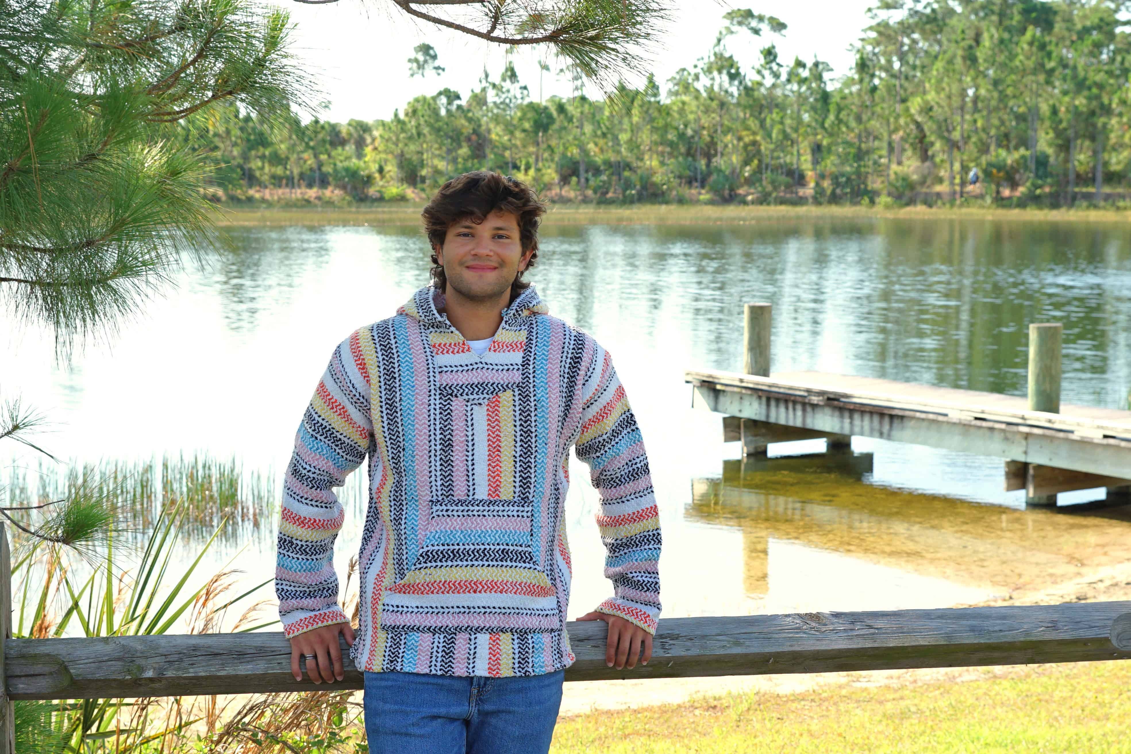 - The Hero Item: The Baja Hoodie. It’s iconic for a reason. Whether you call it a drug rug or a surf poncho, it is warm, tough, and stylish in a boho way. Unlike fast-fashion fleece that sheds microplastics, our Bajas are made from recycled fibers, preventing textile waste from hitting landfills.